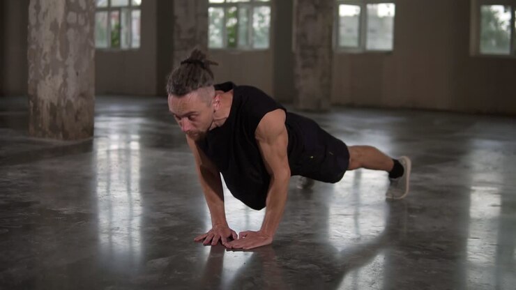 - Start with a standard push-up position, but for this exercise, bring your palms close to each other.